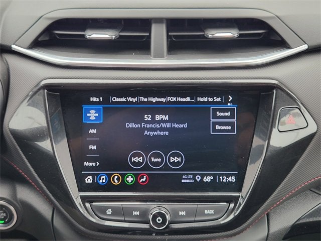 Vehicle Features Include: TrailBlazer RS, AWD, 1 Type-A & 1 Type-C USB Charging-Only Ports, 120-Volt Power Outlet, 2-Way Power Driver Lumbar Seat Adjuster, 3.17 Axle Ratio, 4-Way Manual Front Passenger Seat Adjuster, 4-Wheel Disc Brakes, 6 Speakers, 6-Speaker Audio System Feature w/Amplifier, 8-Way Power Driver Seat Adjuster, 8 Diagonal Color Touchscreen Display, ABS brakes, Air Conditioning, Alloy wheels, AM/FM radio: SiriusXM, Auto High-beam Headlights, Brake assist, Bumpers: body-color, Cabin Humidity Sensor, Cloth w/Leatherette Seat Trim, Compass, Convenience Package, Delay-off headlights, Driver & Front Passenger Illuminated Vanity Mirrors, Driver Confidence Package, Driver door bin, Driver vanity mirror, Dual front impact airbags, Dual front side impact airbags, Dual-Pane Panoramic Power Sunroof, Electronic Stability Control, Emergency communication system: OnStar and Chevrolet connected services capable, Exterior Parking Camera Rear, Flat-Folding Front Passenger Seatback, Front & Rear All-Weather Floor Liners (LPO), Front anti-roll bar, Front Bucket Seats, Front Center Armrest, Front fog lights, Front License Plate Bracket, Front reading lights, Front wheel independent suspension, Fully automatic headlights, Hands-Free Power Programmable Liftgate, Heated door mirrors, Heated Driver & Front Passenger Seats, Heated front seats, Heated Steering Wheel, Heated steering wheel, Illuminated entry, Inside Rear-View Auto-Dimming Mirror, Knee airbag, Lane Change Alert w/Side Blind Zone Alert, Leather Shift Knob, Leather steering wheel, Low tire pressure warning, Mosaic Black Metallic Two-Tone Roof, Occupant sensing airbag, Overhead airbag, Overhead console, Panic alarm, Passenger door bin, Passenger vanity mirror, Power door mirrors, Power driver seat, Power steering, Power windows, Preferred Equipment Group 1RS, Radio data system, Radio: Chevrolet Infotainment 3 System, Rear Cross Traffic Alert, Rear Park Assist, Rear seat center armrest, Rear side impact airbag, Rear window defroster, Rear window wiper, Remote keyless entry, Ride & Handling Suspension, Roof Rack Cross Rails (LPO), Roof rack: rails only, Security system, Single-Zone Auto Climate Control Air Conditioning, SiriusXM Radio, Soft Cargo Shade (LPO), Speed control, Split folding rear seat, Spoiler, Steering wheel mounted audio controls, Sun & Liftgate Package, Tachometer, Telescoping steering wheel, Tilt steering wheel, Traction control, Trip computer, Variably intermittent wipers, Vertical Cargo Net (LPO), Wheels: 18 High Gloss Black Machined Aluminum, Wireless Apple CarPlay/Android Auto, TrailBlazer RS, AWD.